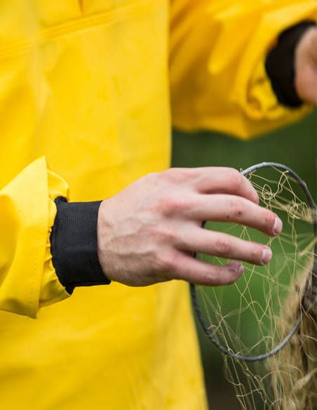 The clothing set contains a smackshape jacket and bib pants. It provides effective protection against wind and rain. The clothing made of the technique of double welding, which increases the strength of the seams. The vestibules protect against getting water into the sleeves and the legs.