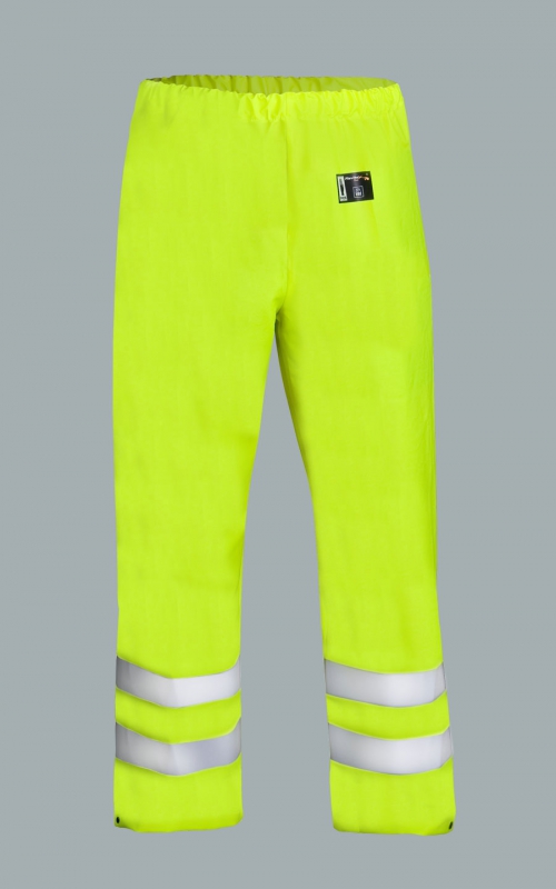 Die Latzhose wurde mit Hilfe der Technik des beidseitingen Pressschweißens gefertigt, was im wesentlichen die Widerstandsfähigkeit der Nähte erhöht. Die angebrachten Warnstreifen bewirken, dass das Produkt die Sicherheit desBenutzers bei der errichteten Arbeit während unterchiedlicher Sicht und Wetterbedingungen erhöht.