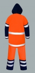 Der Anzug wird aus dem Gewirk von hoher Qualität hergestellt mit einer Mischung von PU und PVC beschichtet; es ist antistatisch, wasserdicht und schwerbrennbar. Das Ganze wird aus dem Stoff Plavitex Multi mit der Dicke 0,65 mm (Grammatur 530g/m²) in Farbe fluoorange / dunkelblau mit Reflexstreifen hergestellt. Die Nähte werden mit Hochfrequenzstrom verschweiβt und dank dessen dicht gemacht. Das Produkt wird bei der Arbeit im Freien und bei schlechten Wetterbedingungen, bei hoher Luftfeuchtigkeit an ausbruchgefährdeten Stellen oder beim Schleifen oder Schweiβen eingesetzt. Das Produkt wird nach den europäischen Normen hergestellt: EN 340, EN 343+A1, EN 1149-5 und EN ISO 14116. Bei der Produktion hat man die Doppelverschweißung der Nähte eingesetzt, was die hohe Qualität und Widerstandsfähigkeit garantiert.