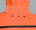 The overalls is made of high quality fabric coated PU/PVC which are resistant for mechanic harms. The bottom part of clothing is made of Plavitex Multi, thickness 0,65mm (weight 530g/m²) in black colour with reflective stripes. The upper part is made of Plavitex Multi too, but in fluorescent colour, also with reflective stripes. The product includes a waterpellent zipper used in the upper part of the back and welded Safety Boots S5 with steel toe cap and steel midsole as a protection against perforation. This product is used in draining canals, where there's a lot of water and high level of wetness. Extra double “high frequency welded” seams ensure reliability under the most extreme conditions. The product conforms with the EN 340, EN 343+A1, EN 1149-5, EN ISO 14116 standards. Available sizes of overalls – 48-62; PVC Safety Boots – 39-48.