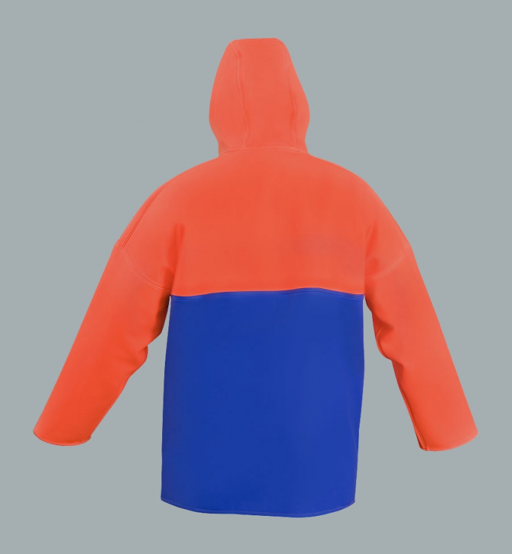 Die Jacke mit Reißverschluss, aus zwei Sorten des Stoffs hergestellt, mit PU/ PVC beschichtet. Mit der höheren Widerstandsfähigkeit gegen mechanische Beschädigungen. Vorderteil wird aus Stoff - Plavitex - 0.70mm dick hergestellt, Hinterteil wird aus dem Stoff Plavitex - 0.50mm dick hergestellt. Die Verbindung von den zwei Sorten des Stoffes bildet eine haltbare und gleichzeitig optimal leichte Jacke, in der die Arbeit angenehm wird. Das Produkt wird nach den europäischen Normen hergestellt: EN 340 und EN 343.