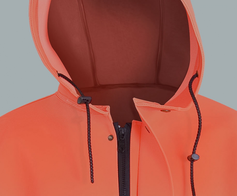 Die Jacke mit Reißverschluss, aus zwei Sorten des Stoffs hergestellt, mit PU/ PVC beschichtet. Mit der höheren Widerstandsfähigkeit gegen mechanische Beschädigungen. Vorderteil wird aus Stoff - Plavitex - 0.70mm dick hergestellt, Hinterteil wird aus dem Stoff Plavitex - 0.50mm dick hergestellt. Die Verbindung von den zwei Sorten des Stoffes bildet eine haltbare und gleichzeitig optimal leichte Jacke, in der die Arbeit angenehm wird. Das Produkt wird nach den europäischen Normen hergestellt: EN 340 und EN 343.