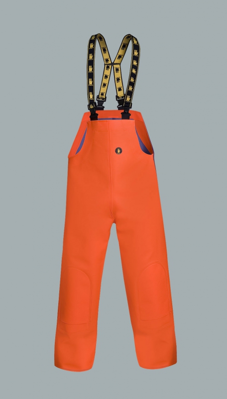 Die Hose wird aus zwei Sorten des Stoffs hergestellt, mit PU/ PVC beschichtet. Mit der höheren Widerstandsfähigkeit gegen mechanische Beschädigungen. Vorderteil wird aus Stoff - Plavitex - 0.70mm dick hergestellt, zusätzlich mit einer Stoffschicht an den Knien verstärkt, Hinterteil wird aus dem Stoff Plavitex - 0.50mm dick hergestellt. Die Verbindung von den zwei Sorten des Stoffes bildet eine haltbare und gleichzeitig optimal leichte Latzhose, in der die Arbeit angenehm wird. Das Produkt wird nach den europäischen Normen hergestellt: EN 340 und EN 343.