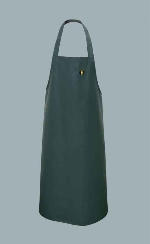 Schürze aus Baumwollgewebe, beschichtet mit Polyvinylchlorid. Die Schürze ist gegen Öl und ölhaltige Produkte jeder Art beständig. Das Produkt schützt auch vor Wasser, wodurch es bei Arbeiten unter starker Wassereinwirkung eingesetzt werden kann.
