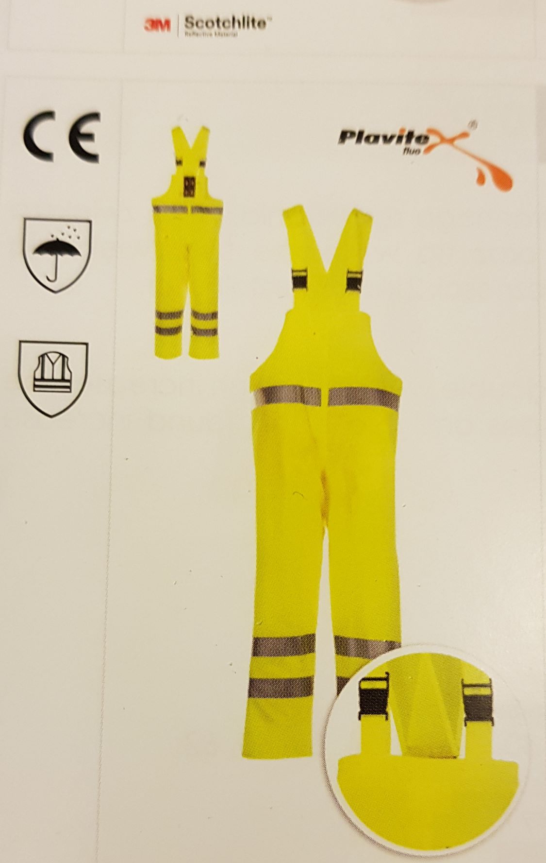 It is made from the knitted polyester fabric and coated with polyvinyl chloride. The product is used wherever work is carried out in difficult and bad weather conditions and in poor visibility. Thanks to the double-sided welding of the seams with high-frequency electricity, the product protects against the strong wind and rain. The product meets the European