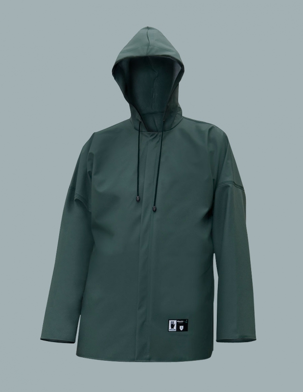 Die ¾ Jacke, aus dem aus dem Polyester Gewirk hergestellt mit Polyvinylchlorid beschichtet. Sie wird mit Metalldruckknöpfen zugeknöpft, die mit einem Plissee bedeckt sind, um den Arbeiter vor Strom zu schützen. Bei sehr schlechten Wetterbedingungen kann man die Kapuze benutzen. Die Jacke gibt eine volle Sicherheit gegen Regen und Wind. Sie ermöglicht die Arbeit auf den gefährlichen Platzen, wo es Kontakt mit flüchtigem Gas oder Methandünsten gibt. Das Produkt erfüllt die europäischen Normen: EN 340, EN 343 und EN 1149-5.