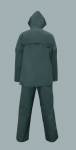 Hergestellt aus Polyestergewirk mit PVC-Beschichtung. Das Produkt besteht aus einer 3/4 Jacke mit abgedecktem (Plissee) Druckknopfverschluss, um den Mitarbeiter vor elektrostatischen Ladungen zu schützen und Latzhose. Bei extrem schweren Witterungsbedingungen kann die als Kopfschutz entwickelte Kapuze benutzt werden. In Verbindung mit der Latzhose bietet das Produkt einen Rundum-Schutz vor Regen und Wind und erlaubt die Durchführung von Arbeiten in explosionsgefährdeten Bereichen.