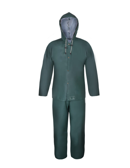 A garment consisting of a ?¾ jacket and dungarees effectively protecting against wind and rain, designed for work in explosion hazard zones. Double sided welding technique increases durability of seams. Practical, placket fastening and adjustable hood. Comfort of use is increased by cuffs in sleeves and suspenders with wide rubber band at the back. Proper electrostatic properties is ensured by the lack of metal elements on the outside.
