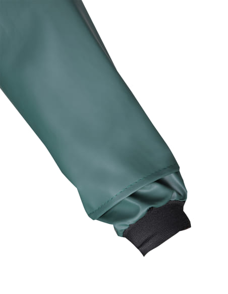 A garment consisting of a ?¾ jacket and dungarees effectively protecting against wind and rain, designed for work in explosion hazard zones. Double sided welding technique increases durability of seams. Practical, placket fastening and adjustable hood. Comfort of use is increased by cuffs in sleeves and suspenders with wide rubber band at the back. Proper electrostatic properties is ensured by the lack of metal elements on the outside.
