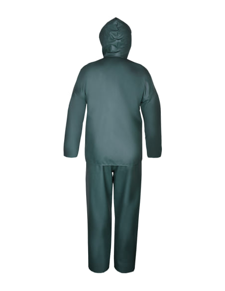 A garment consisting of a ?¾ jacket and dungarees effectively protecting against wind and rain, designed for work in explosion hazard zones. Double sided welding technique increases durability of seams. Practical, placket fastening and adjustable hood. Comfort of use is increased by cuffs in sleeves and suspenders with wide rubber band at the back. Proper electrostatic properties is ensured by the lack of metal elements on the outside.