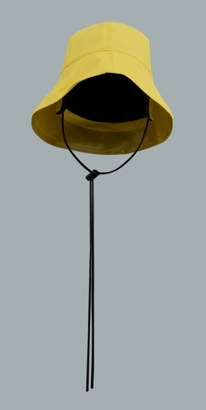 Hergestellt aus Polyestergewirk mit PVC-Beschichtung. Der Hut wird hauptsächlich bei Arbeiten in der Fischerei unter ungünstigen Witterungsbedingungen sowie überall dort eingesetzt, wo der Kopf starken Regenniederschlägen ausgesetzt ist. Das Produkt wird meistens in Verbindung mit Sturm-/Ölkleidung verwendet.