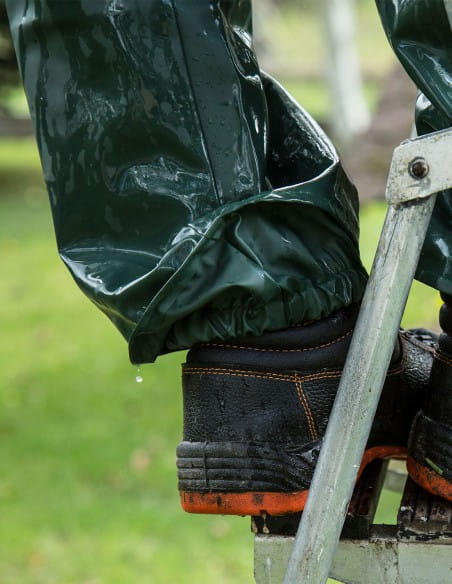 The overall offers effective protection against wind and rain. It was manufactured using the technique of pressure welding on both sides, which essentially increases the resistance of the seams.