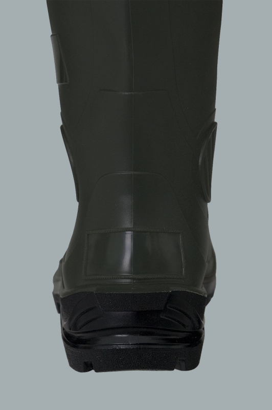 Aus PVC-Stoff hergestellt. Das Polyesternetz drinnen. Die geschnitzte, hohe Sohle.
