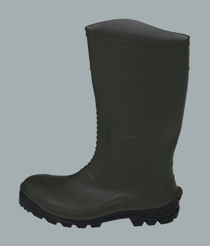 Aus PVC-Stoff hergestellt. Das Polyesternetz drinnen. Die geschnitzte, hohe Sohle.