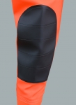 Die Wat-Hose "MAX S5" SBM01 FLUO ist aus Plavitex Heavy Duty Fluo Stoff (PVC / Polyester) mit einem Gewicht von 700 g / m² gefertigt, der sich mit sehr hohen Festigkeitswerten, erhöhter Sichtbarkeit durch die Verwendung eines speziellen Fluo Gewebes auszeichnet. Das Gewebe schützt den Arbeiter bei schwierigen Sichtbarkeitsbedingungen. Das entsprechende Gewicht des Produkts verleiht Schutz gegen mechanische Beschädigungen. Zusätzliche Verstärkung an den Knien schützen das Produkt gegen Abrieb und eventuellen Beschädigungen. Bei der Wat-Hosenherstellung wurden neue Befestigungen des Bandes und Trägergummi verwendet um den Komfort beim Gebrauch zu verbessern. Ergonomische hochklassige Schuhe (Typ S5) sind mit einem vor Durchlöcherung schützenden Fußbett und Stahlkappen, die zur Herstellung von WAT-HOSEN "MAX S5" verwendet werden, ausgestattet. Das alles stellt sie an erster Stelle in Härtetests und garantiert maximalen Schutz für die Füße und den ganzen Körper.