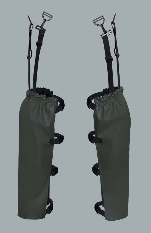 Das Produkt wird aus dem Polyester Gewirk hergestellt mit Polyvinylchlorid beschichtet. Es wird bei den Arbeiten benutzt, wo sich die Beine im Wasser oder in großer Feuchtigkeit befinden bei gleichem Kontakt der Fuße mit Boden z.B. Gartenarbeit, Anbau, Pflanzen, Gemüse - und Obsternte. Das Produkt ist in dem Knieteil verstärkt mit einer in der inneren Tasche gesetzten Einlage E.V.A. Das Hosenbein wird in der Taille angehängt mit Hilfe von regulierbaren Verschlüssen. Das Produkt wird nur in einer Größe hergestellt, weil man es dank der Verschlüsse am Bein, regulieren kann.