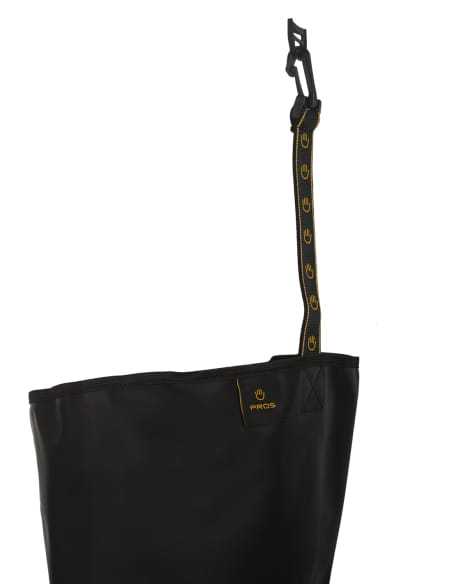 Specific features: - antistatic properties - increased strength of seams - elastic fixing tapes - high quality wellingtons - resistance to bending in low temperatures Norms: EN ISO 13688 EN 343 EN 1149-5 EN ISO 20347 - O4 FO SRC Description Waterproof trousers with permanently welded, high quality boots. Made of durable coated material with anti-electrostatic properties. Welding technique on both sides increases the strength of seams. The product is resistant to bending in high negative temperatures. Equipped with special elastic straps for belt attachment. Material PLAVITEX HEAVY DUTY ANTISTATIC - a polyester-based material coated on one side with PVC. It is highly resistant to tearing and has waterproof stitching. Due to the unique chemical composition of the coating the material has antistatic properties and can withstand adverse weather conditions and bending at temperatures down to -50°C. The material meets the requirements of the EN 343 and EN 1149-5 standards, which has been verified by tests conducted by a certified textile testing institute.